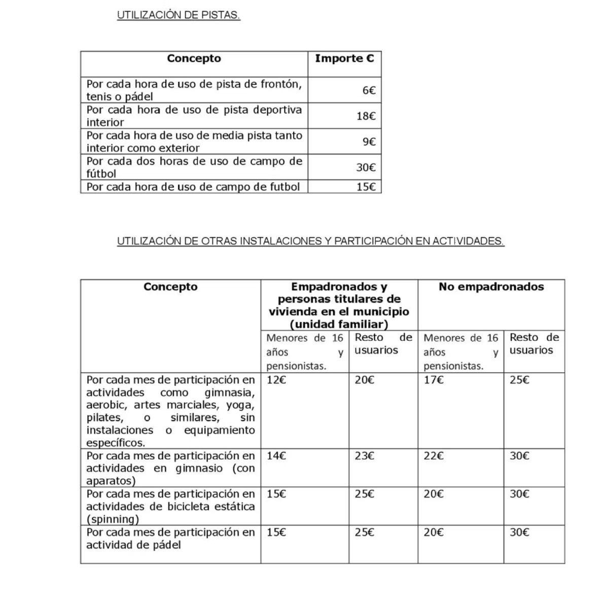NOTA. – Todas aquellas personas que necesiten rehabilitación y dispongan de justificante médico podrán hacerla en nuestras instalaciones sin coste alguno. (Sólo residentes).